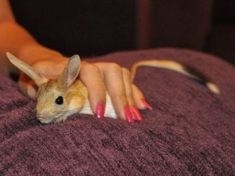 - جربوع. إن القوارض الصغيرة التي تشبه الفأرة للوهلة الأولى تستحضر الموقع بمظهرها الغريب. أول شيء يلفت انتباهك هو آذانها الكبيرة وفقط ضخم ، مقارنة بجسم صغير وذيل جميل مع شرابة. الأرجل الخلفية للحيوان أطول بكثير من المقدمة ، لذلك يتحرك الجربوع بشكل سريع. الجربوع محلية الصنع حنون وغير ضار وترويض.