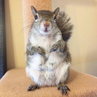 - السنجاب. اسم آخر للحيوان هو veksha. حيوان سريع وذكى للغاية وذيل طويل رقيق وعيون سوداء لامعة. يجعل الاتصال بسرعة ويعتاد على المالك. حتى لا يشعر السنجاب بالملل في الأسر ، فمن الضروري تزويده بظروف واسعة. يجب أن تأخذ أيضًا في الاعتبار حقيقة أنها تغير معطف الفرو حسب الموسم. مع الرعاية والتغذية المناسبة ، يمكن أن تسعد صاحبها حتى 15 عامًا.