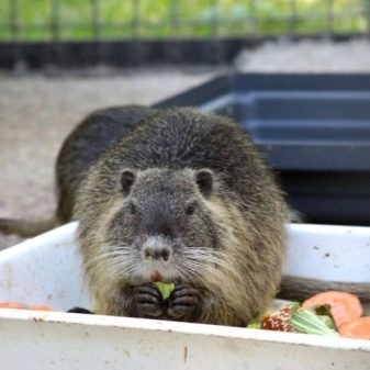 - نوتريا. يتم تربية Nutria للأغراض الصناعية في المزارع المتخصصة أو في المزارع الخاصة. لكن هذه القوارض الكبيرة مناسبة لحفظ المنزل. للحصول على الرعاية المناسبة ، تحتاج الحيوانات إلى توفير إجراءات المياه اليومية وقفص واسع. هم متواضعون في التغذية ، ولديهم مناعة مستقرة ضد الأمراض. يبلغ وزن الشخص البالغ حوالي 10 كجم. يبلغ عمر Nutria حوالي 7 سنوات.