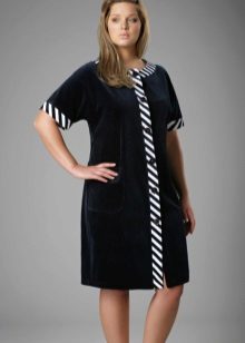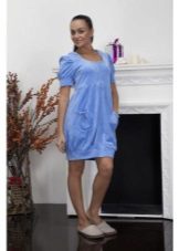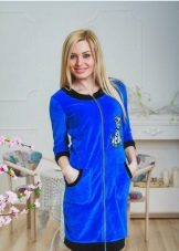 مثل هذا الثوب القطيفة ذو اللون الأزرق الداكن العملي سيزين أي امرأة. خط رقبة غير اعتيادي ، أكمام متوهجة ثلاثة أرباع ، جيوب رقعة عملية وخط وسط يبرز الخصر - كل هذا يخلق مظهرًا أنثويًا متطورًا حقًا ، مناسب تمامًا لجو الراحة المنزلية.