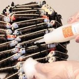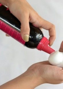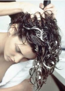 - في هذا النموذج ، من الضروري تطبيق تركيبة تجعيد الشعر على تجعيد الشعر. لسهولة الاستخدام ، ينتج المصنعون مستحضرات تجعيد الشعر في زجاجات خاصة مزودة بفوهة. لتوزيع المادة بالتساوي من خلال الشعر ، يمكنك استخدام اسفنجة صغيرة. احتفظ بالمنتج على رأسك وفقًا للتعليمات.