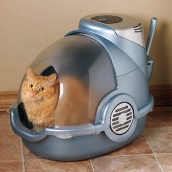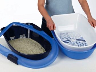 يمكن إعطاء الأفضلية للهياكل ذات الجوانب المنحنية أو ارتفاعات مختلفة من الجانبين الخلفي والأمامي. في مثل هذه الصواني ، لا تسقط حبيبات الحشو المستخدمة من الخزان حتى مع الحفر المكثف للحيوان. سيكون من الأسهل أن يصعد القط في الدرج من جانب الجوانب الأمامية.