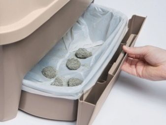 إذا كانت بساطة تنظيف الصينية مهمة ، يمكنك إلقاء نظرة على المنتجات التي يمكنك وضع أكياس القمامة بداخلها. يمكن أن تكون تصميمات بإطار أو حتى صواني بسيطة بدون شبكة. ولكن قبل الحصول على هذه الخيارات ، يجب الانتباه إلى سلوك القطة. بعض الحيوانات الأليفة خائفة من الضجيج المفرط ، وقد لا تحب سرقة حقيبة.