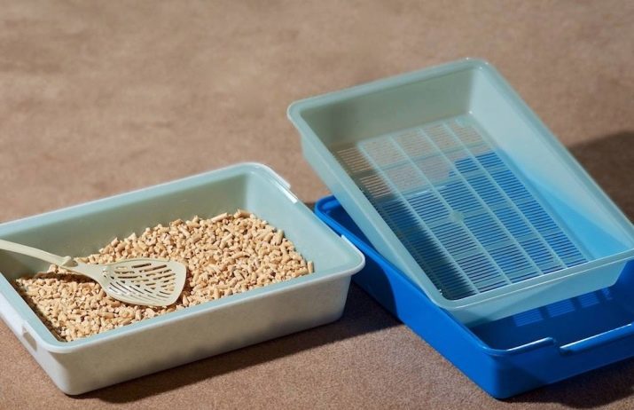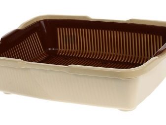 الصواني بدون شبكة غير ملائمة حيث أن الحشو ، بغض النظر عن مدى روعته ، يبدأ في التسلل خلف أرجل الحيوان. في الوقت نفسه ، لن يلعب ارتفاع الجانبين دورًا خاصًا في كثير من الأحيان. على سبيل المثال ، لن يكون قادرًا على منع انتشار الحشو من نشارة الخشب أو الرمل.يجب غسل هذه الصناديق أكثر من غيرها ، مع إجراء استبدال حشو في نفس الوقت.
