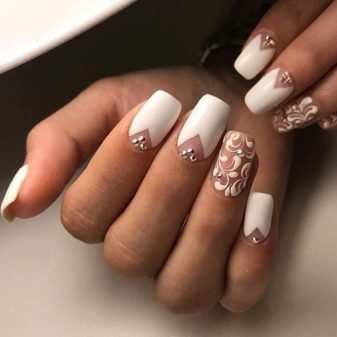 - يمكن دمج مانيكير كريم حساس بشكل مفيد للغاية مع الأبيض. لذلك ، على ورنيش دسم ، يمكنك رسم المعينات البيضاء وفصلها باستخدام أحجار الراين الزخرفية المصغرة.