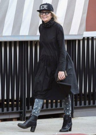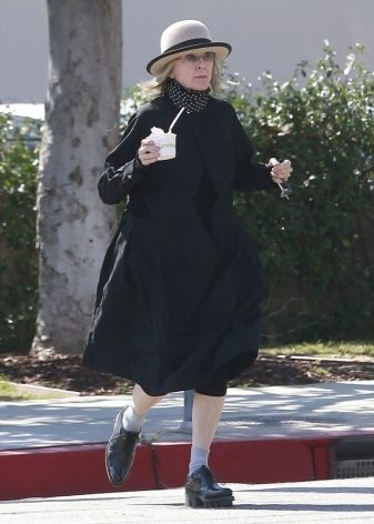 تخلق الممثلة صورًا جريئة لدرجة أن أي نظير روسي متقاعد صادم. لكن ليس مشجعي كيتون. تلتقط القبعات بخبرة ، وتحب سراويل الرجال والأحذية الخشنة الضخمة.