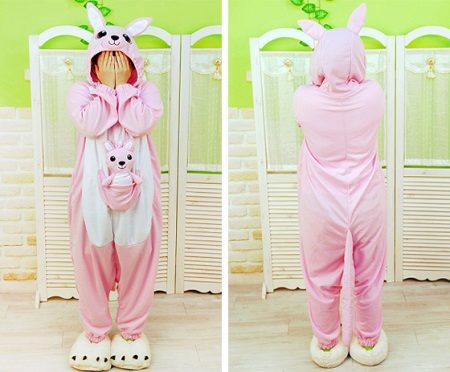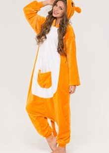 واحدة من أكثر الشخصيات شعبية حيث يحب عشاق kigurumi قضاء الوقت في الاسترخاء والنوم هو الكنغر. حيوان مضحك مع جيب على معدته رائع للأعمال المنزلية ، حيث يمكنك وضع الأشياء الصغيرة التي تحتاجها. يبدو غطاء المحرك كمامة لطيفة للحيوان ، والتي يسهلها وجود الأذنين والعينين والأنف والابتسامة - الفم. يساعد المظهر الكامل لهذه البيجاما على رفع المزاج ، وستتجاوز الأحلام السيئة في هذه البدلة المريحة.