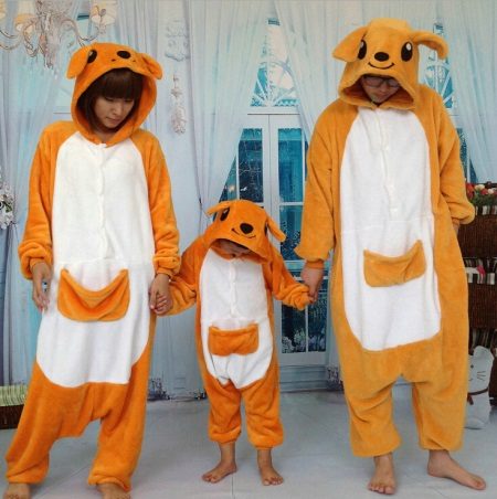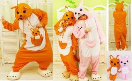 إذا ابتعدت عن نموذج kigurumi ، ولكن في نفس الوقت بقيت في موضوع الحب للحيوان الأسترالي ، يمكنك الانتباه إلى البيجاما الكلاسيكية مع طباعة في شكل شخصيات الكنغر. من بين موديلات الأطفال ، يمكنك العثور على بدلة بيجامة ، على سترة بها طباعة كبيرة على شكل كنغر. أو على بيجامة الكبار ، غالبًا ما يتم العثور على جيب رقعة - كنغر ، وهو أكثر ارتباطًا بعنصر الديكور.