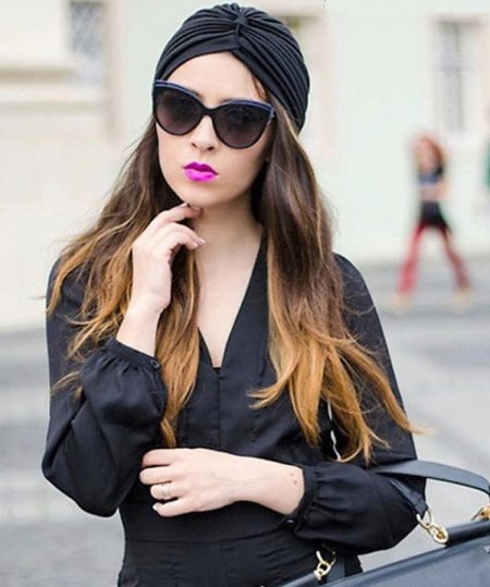 يمكن نصح عشاق الكلاسيكيات بتوجيه انتباههم إلى نموذج القبعات ، المصنوع بأسلوب "رجعي". واحدة من هذه النماذج الشعبية ذات مرة هي عمامة أو عمامة. يتناسب غطاء الرأس الأنيق بإحكام حول الرأس ، مما يشكل نسجًا جميلًا على الجبين. نموذج أنثوي ومذهل بشكل غير عادي من شأنه أن يساعد على التحول الفوري والتميز بين الآخرين. يبدو رائعا مع الشعر الفضفاض. غالبًا ما يتم تقديمها بظلال عميقة داكنة من الأزرق أو الأخضر أو النبيذ.