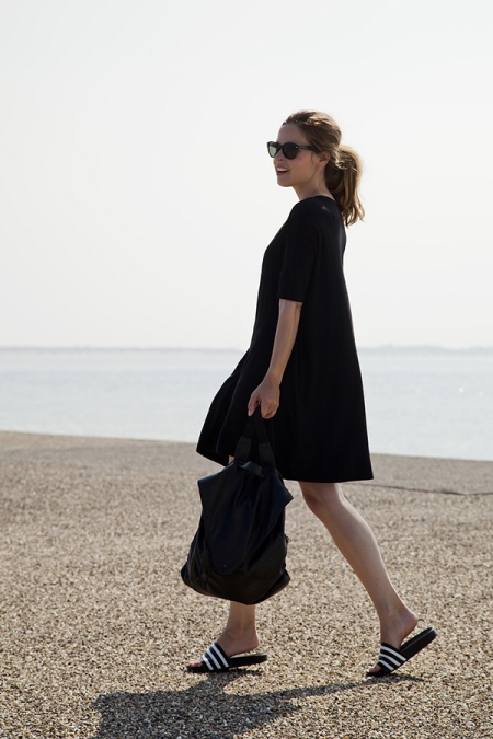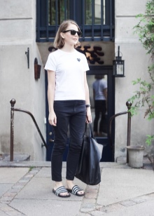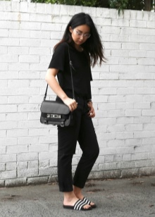 تتميز موديلات أديداس الأردواز باللون الأسود بنعل مخدد قليلاً ومصممة للمشي لمسافات طويلة. يسمح لك التصميم الأنيق للأحذية الصيفية بدمجها مع ملابس مختلفة - مع فستان وتنورة وجينز. يمكنك اختيار حقيبة حجمية بنبرة.