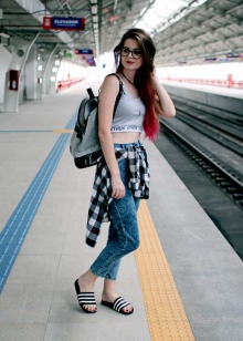 - مع السراويل القصيرة والجينز والقمصان ؛