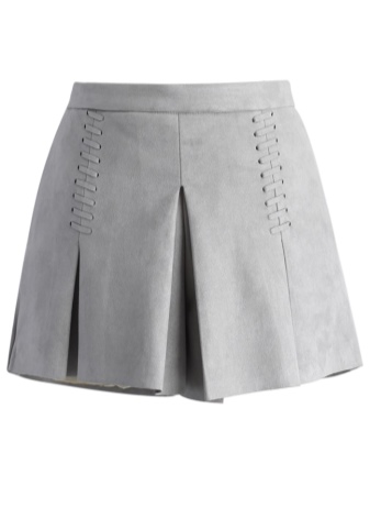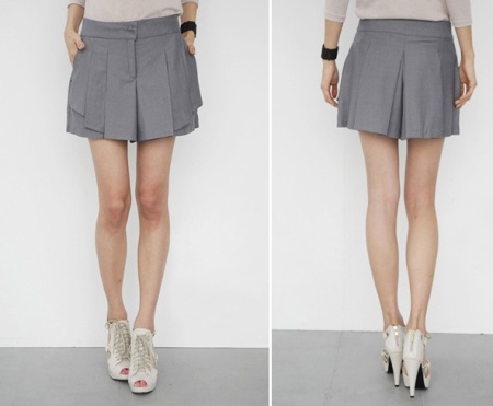 تبدو التنورة القصيرة باللون الرمادي مثيرة للاهتمام ، حيث تجمع بين نموذجين ، بينما يمكنك الشعور بالراحة ، وعدم الخوف من أن التنورة يمكن أن تسحب أو تطير بعيدًا عن الرياح.