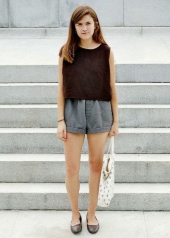 - في الصيف ، نرتدي شورتًا رماديًا بخصر مرتفع وبلوزة مطوية أو أعلى من قصة حرة ، تكمل الصورة بحزام مشرق وصنادل وقبعة. تعتبر القمم الرفيعة والقمصان ذات الألوان الزاهية مثالية للشورتات غير الرسمية الرمادية. على القدمين صنادل أو شباشب.