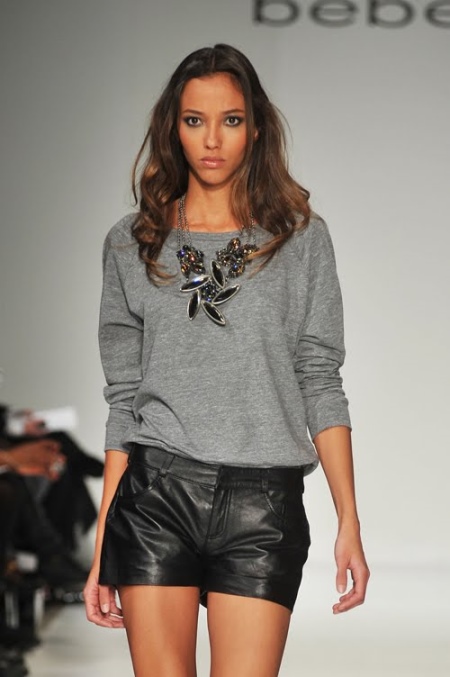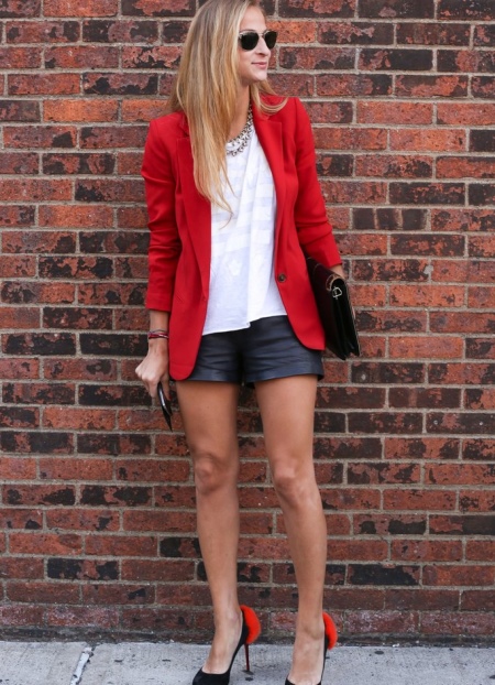 - شورت جلدي. خيار لأصحاب الساقين النحيلة الشجعان. على رأس مثل هذه المجموعة ، يتم وضع الألوان المحايدة الهادئة ، حيث أن البشرة مشرقة بالفعل. يمكن أن تكون قمصان وقمم ، وسترات خفيفة. تبدو السراويل الجلدية جميلة مع الجوارب والأحذية ذات الكعب العالي السميك.