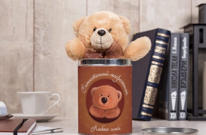 يمكن شراء هذا المنتج من متجر الهدايا. إنها علبة متوسطة الحجم مزخرفة برسومات ، حيث يوجد دب دمية. ستكون هذه الهدية مناسبة لكل من فتاة صغيرة وفتاة صغيرة. غالبًا ما يتم تقديمه عند التخرج.