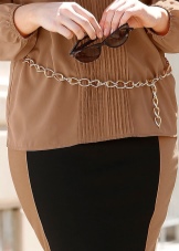 - Els elegants cinturons de cadena són molt populars entre els fashionistes moderns. Amb aquests adorns, qualsevol vestit femení es converteix en un vestit de luxe, des del qual és difícil mirar de distància. Poden constar d’enllaços daurats o d’argent. Actualment molts fabricants produeixen cadenes amb bonics penjolls de petites mides.