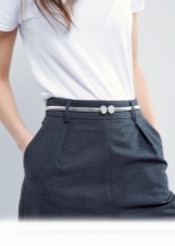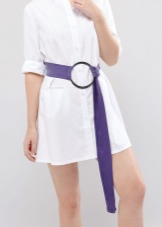 - Un altre model universal és el cinturó estret. Es pot portar no només a la cintura, sinó també als malucs o sota el bust. Els productes estrets es combinen perfectament amb la roba clàssica i femenina d’una manera lleugera i elegant.