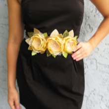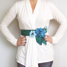 Hi ha opcions més assequibles. Per exemple, bonics cinturons fets de tela o de cuir. Podeu subratllar el luxe i la feminitat de la imatge amb l'ajut d'un bell accessori de setí. Però no es recomana combinar una cosa així amb un vestit d'un material similar, ja que simplement es perdrà en un context general.