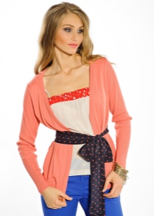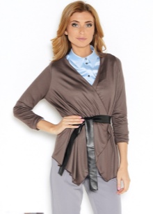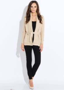 Si prefereixes un estil casual casual a la roba, agafa un cardigan de punt i una corretja de cuir estreta. Al fons d'un conjunt d'aquest tipus, els texans prims o rectes es veuen millor.