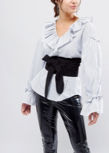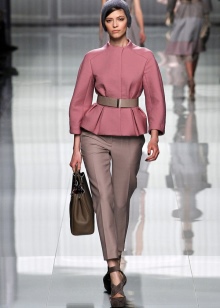 Els articles elegants semblen espectaculars en conjunt amb els pantalons clàssics. Aquests conjunts són adequats tant per a sortides diàries com per a vacances. A la planta superior es pot portar una camisa contrastada o una brusa fluixa amb màniga llarga.
