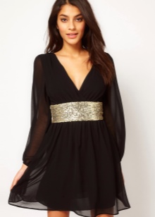 Per a un luxós vestit de nit, podeu escollir una opció més brillant. En el fons d’un vestit elegant, lluiran cinturons de cadena, models daurats o cinturons brillants amb pedres. Podeu recollir una bonica còpia tèxtil, però no ajunteu roba i accessoris del mateix teixit.