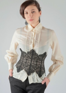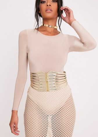 - Per ocultar petits defectes a la figura, ajudarà un cinturó de cotilla sexy. Arrossegarà la panxa de la dona. El model de cotilla fa que la flexió de la cintura sigui gairebé ideal. Cada fashionista somia amb aquest efecte! Però és millor no acudir a tals cinturons a aquelles dones joves que no tenen una cintura pronunciada, ja que tindran un aspecte inharmoni i faran èmfasi en els defectes de la figura.