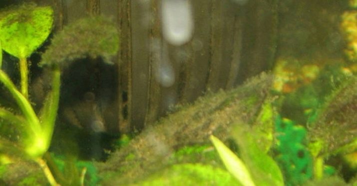 El color de les algues pot variar del verd clar al blau saturat i gruixut. Característica d’ells olor picant i estructura mucosa. Els bacteris no només cobreixen les parets de l’aquari, sinó també el sòl, les plantes, els elements decoratius i els equips col·locats sota l’aigua.