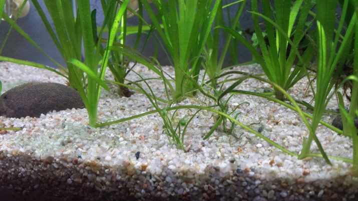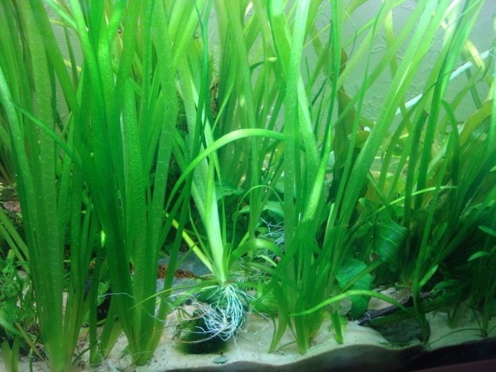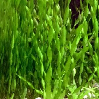 - Vallisneria nana - una subespècie nana, té les fulles molt primes d’un color verd profund. L’alçada màxima de la planta als embassaments artificials es troba entre els 30 i els 50 cm, però a la natura es poden veure algues de fins a 70 cm d’alçada.Per la seva disposició compacta i la poca alçada, les algues no interfereixen amb la penetració de la llum a l’aquari i no es converteixen en un obstacle per a la lliure circulació dels peixos.