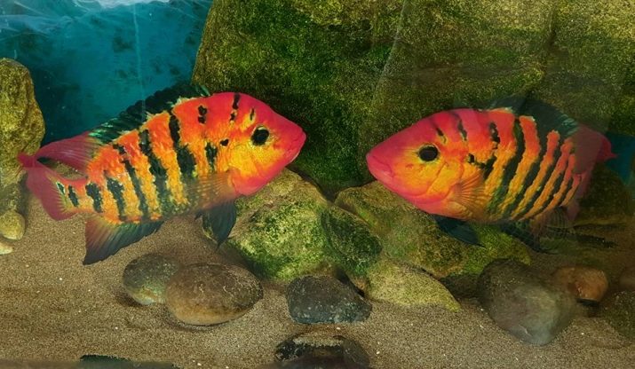 Aquests peixos tenen una mida gran, de vegades creixen fins a 40 centímetres de longitud. Estan pintades de color taronja o groc brillant. Viuen fins als 14 anys. El seu personatge és força agressiu. Cal mantenir en aquaris, el volum no és inferior a 200 litres.