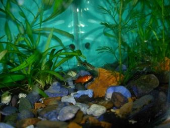 Si escolliu un petit aquari, al seu interior encara heu de crear l’ambient adequat. Es recomana plantar, però no en quantitats excessives. La quantitat de sòl hauria de superar els 3-4 centímetres d'alçada. La decoració es fa utilitzant petits articles elaborats amb materials naturals.