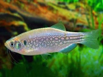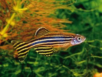 - Danio Es distingeixen per la seva tranquil·litat i, per tant, solen viure en ramats, per la qual cosa la seva interessant coloració es veu encara més brillant. Típicament, aquests peixos es fan petits, no més de 3-4 cm, s’alimenten tant d’aliments secs com de proteïnes congelades. La temperatura de l’aigua adequada és de 20 a 26 graus.