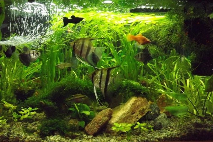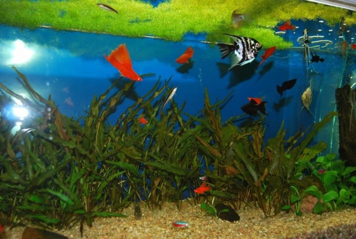 Per a aquaris més grans, podeu seleccionar peixos grans amb una longitud de 5 cm o més, però les mascotes s’han de mantenir d’acord amb els principis d’ompliment uniforme de tot el volum de l’aquari. Aquests peixos s’han de combinar verticalment de manera que no resulti que una de les capes (inferior, mitjana o superior) es superpobli, i l’altra sigui buida.