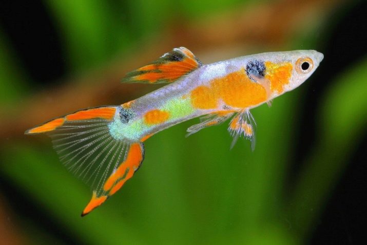 Les aletes guppy són allargades, allargades. La forma de l’aleta caudal depèn de la raça del peix.