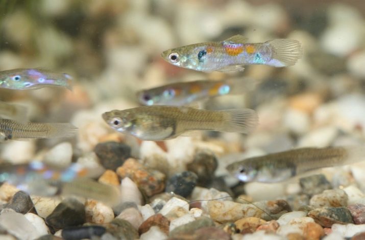 Quan els alevins tenen aproximadament un mes, un aquarista atent pot distingir fàcilment els mascles de les femelles. Les nenes guppies en aquesta edat comencen a manifestar-se un “punt de naixement”: una zona fosca específica de l’aleta anal. Tanmateix, en els portadors d’un color clar de fons, aquesta zona pot ser poc distingible.