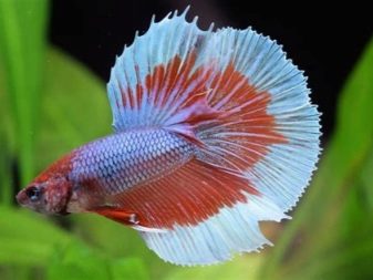 - Galles coronades. La única cua velada única, així com les aletes dorsals i anals dels peixos lluitant amb la corona, amb la seva forma disseccionada en raigs individuals, s’assemblen a la corona reial. Hi ha tres tipus de cues de corona, que es distingeixen per la qualitat dels rajos que sobresurten. Es tracta d’un peix d’un sol raig, en què la forma de les aletes obertes s’assembla a un pentinat. Hi ha peixos amb doble raig. En aquests peixos, els raigs allargats de la cua estan units per parelles per una membrana, formant moltes "cues d'oreneta". El tercer tipus de cues de corona es diferencia dels altres representants per la cua, que consisteix en raigs allargats aparellats als extrems.