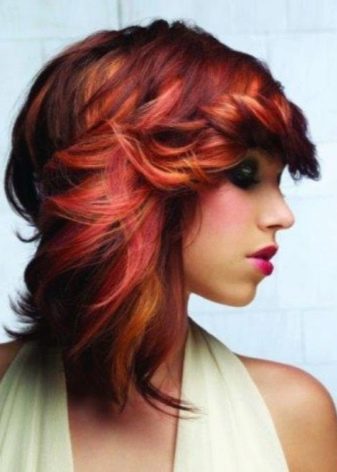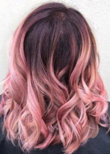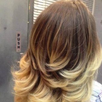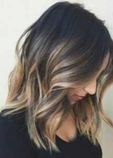 Es poden realitzar transicions de colors boniques en fils de longitud mitjana, per regla general, arriben al nivell de les espatlles. En aquest cas, es pot realitzar una tintura a qualsevol tall de cabell model, a aquesta categoria pertany una cascada força popular amb o sense estrets. En el decurs del treball amb una longitud tan extensa, el mestre ha de seleccionar determinades capes de talls de cabell per aplicar la composició colorant. La tinció adequada executada serà capaç de remarcar l’asimetria, afegir volum a la corona, si un tall de cabell ho requereix, o fer ombra als fils que emmarquen la cara.
