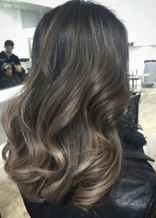 L’avantatge principal dels cabells d’aquest color és un petit percentatge de cremades del color sota els raigs naturals del sol. Tot i això, això no significa en absolut que no es pugui tenyir aquests rínxols en tecnologia de moda. Per als rínxols negres i marrons a l'estil del balayazh, els tons que s'acompanyen es seleccionen en una paleta de colors, des de tons cirerers fins a flors de platí o cabells grisos. Opcions similars seran més adequades per a les nenes joves. Pel que fa a les dones de cabells foscos durant 40 anys, serà possible remarcar la bellesa de les files fosques quan es tenyeixen en tons càlids. L’èmfasi en aquest cas hauria de ser un contrast deliberat, ja que els cabells radicalment negres no s’harmonitzaran i fluirien suaument cap a un color blanc deliberadament.