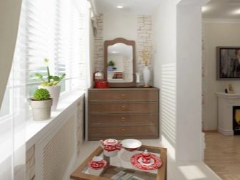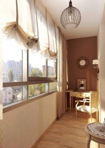 Parlem de mobles. Com que no es pot tenir un munt de mobles al balcó o loggia (això pot provocar sobrecàrregues i col·lapses posteriors), no cal que l’interior sigui massa voluminós. Sempre podeu fer un aspecte intern i bell (alhora) lleuger.