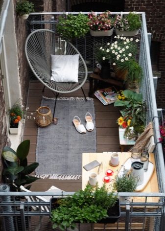 La majoria de les opcions de disseny s’associen a la presència de vegetació: diversos arbres nans, plantes conreades. El cas és que hi ha més llum al balcó que a la loggia. Per tant, heu de triar les plantes segons l’amor a la calor. Com s'ha esmentat anteriorment, la calefacció no es pot instal·lar allà, també és informació molt important per a la presència de plantes com a decoració.