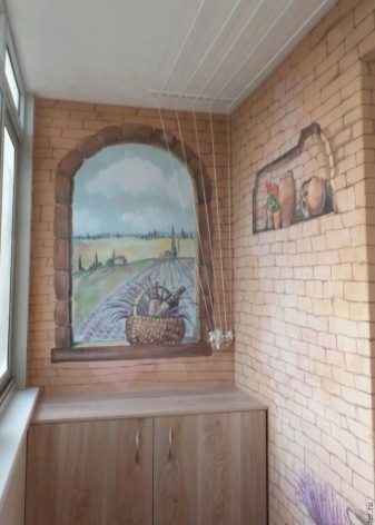 Les parets d’un balcó fet de maons són més fàcils de decorar amb pintura. Aquest mètode de disseny no és car i no requereix habilitats especials. Podeu crear bells patrons i imatges mitjançant els patrons. Les parets pintades tenen un bon aspecte en tots els estils interiors moderns.