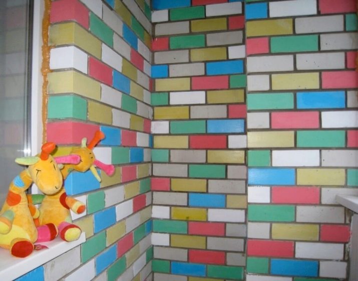 - Multicolor. La tècnica també es coneix com un maó. Una opció de disseny laboriosa, però molt efectiva. Cada maó ha de ser pintat de diferents colors. L’últim pas és processar les costures amb un raspall prim.