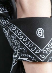 El simbolisme d’estils també actua com un tret característic d’aquests bandanes. Per cert, una bandana es pot decorar amb cranis de pirates, atributs de balancí, símbols musicals i fins i tot un eslògan, el logotip de marques famoses.