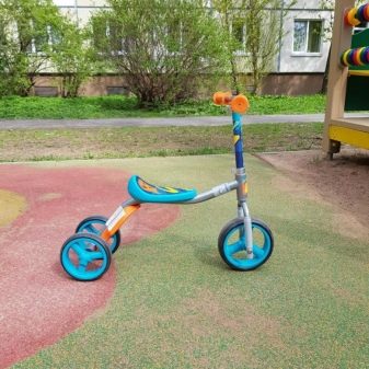 Muntar amb bicicleta, fins i tot amb tres rodes, és una habilitat força difícil per a un nadó. Sovint es pot observar la imatge: un petit ciclista es desplaça sobre el seu vehicle, apartant-se de les cames i no utilitzant pedals que li interfereixen.