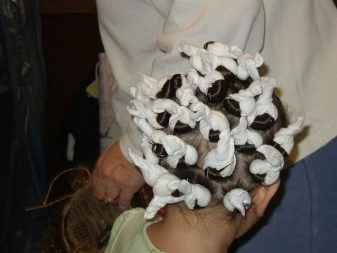 En el primer cas, heu d’agafar un fil prim i, tot seguit, pentinar-lo. Després d’això, heu d’enrotllar-lo fortament sobre un papil·lot, començant pels extrems del cabell i passant a les arrels. A continuació, s’ha de lligar la trena d’escuma amb un nus o amb un llaç. Fer tot no és massa ajustat.