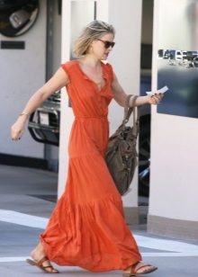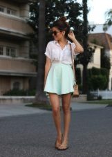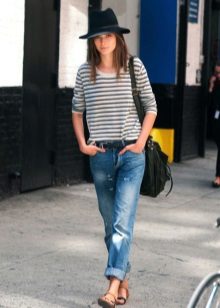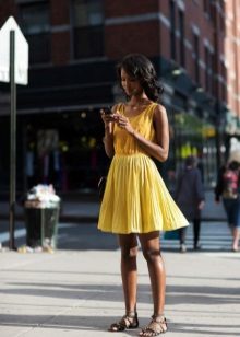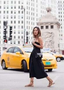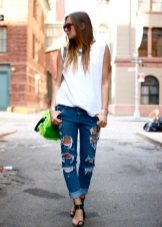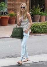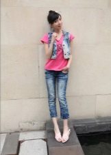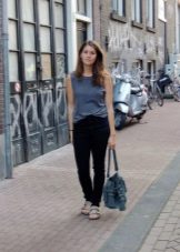 Els vestits de vol i les samarretes al terra tenen un aspecte perfecte amb sabates sense talons. Aquest vestit podrà conquistar no només l'amfitriona, sinó també la seva segona meitat. I si encara no hi ha amor a l’horitzó, un arc romàntic ajudarà a trobar-ne un escollit. Els texans prims serveixen d’assistents fidels a la dama de moda. Complementant-los amb sabates de planta plana, la jove crea un armari bàsic adequat per a les realitzacions diàries.