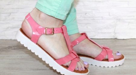 Les sandàlies lacat tenen un aspecte força impressionant i elegant. Aquesta és una excel·lent elecció per sortir o fer festa. Si el porteu durant el dia, el color ha de ser positiu i vibrant.