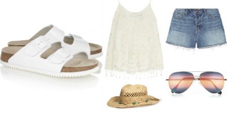 - També cal destacar les sabates d’estiu de punta tancada. Un dit elegant amaga els dits, però mostra una mica la forma del peu. Gràcies a aquesta combinació, les sandàlies semblen maleïdes. El més important és que el mitjon sigui clàssic, és a dir. una mica illenca.
