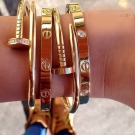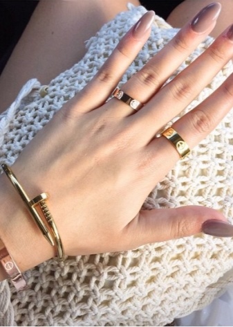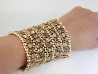 Les polseres d'or de l'època daurada són la combinació perfecta de preu i qualitat. Hi ha disponibles diversos models, però en la seva majoria són clàssics.Una gran solució seria comprar una polsera dura amb zirconis cúbics o diamants. Per als fashionistes moderns, també hi ha delicades joies amb penjolls de papallona, boles, un signe d’infinit.
