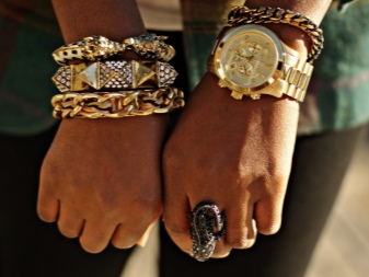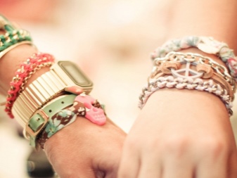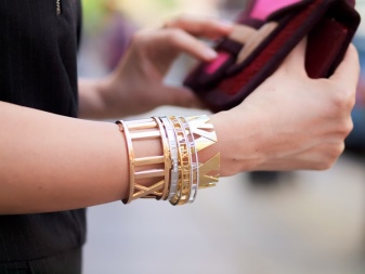 A més dels tipus clàssics, les noies modernes poden triar per si mateixes una varietat de polseres originals. Per a l'estil urbà, una decisió interessant seria comprar models combinats amb pell. Al braç s'asseuen "molt bé" i es combinen fàcilment amb la roba de cuir.