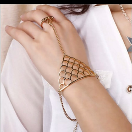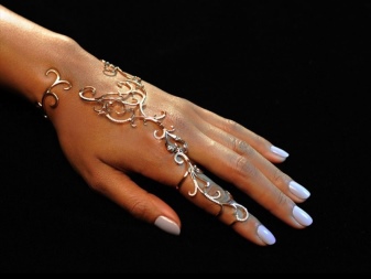 Per a un passeig per la ciutat, una cita o reunions amables, trieu un llaç suau i graciós. Una camisa o túnica blanca espaiosa es combinarà perfectament amb una polsera inusual. Una bona opció serà un model d’obertura fina, connectat amb un anell al dit.